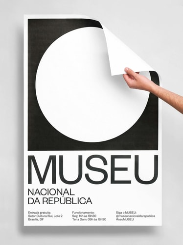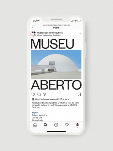 The circle and square join together to create a modern symbol for Museu Nacional. As a central feature of the identity, it represents the aerial view of Niemeyer’s dome while establishing the idea of “inside and outside”, contrasting the relationship between these two spaces. More than what it encloses, the surrounding area of the museum acts as a bustling social hub where citizens congregate, musicians perform, activists protest, others practice yoga and so on. Like a portal, the circle also functions as a graphic device that contains different imagery, be it photography, architecture, art or video, connecting and juxtaposing these two spaces in a constant state of dialogue and tension. A contemporary take on a traditionally modern typographic style, the use of Founders Grotesk recalls the visual language employed during Brasília’s early urban development while its circular letterforms allude to the museum’s infinitely curved walls.