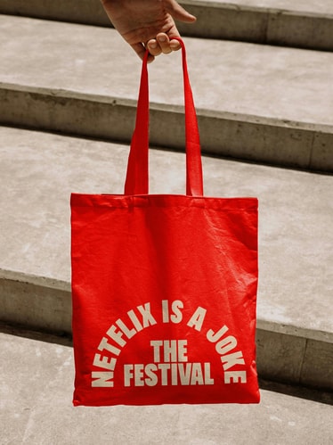To develop the voice of this year’s event, we took the name as a starting point (“Netflix is a joke”) and created a persona that could both hype up talent and poke fun at itself. This dry, self-aware, and slightly vulnerable voice brings unexpected humor through over-articulated asides (“We’ve got the best comedy (not a joke)”), playful nods to LA comedy culture (“New York is gonna be sooooo jealous”), and a dose of irreverent self-deprecation (“Laugh at us”).
