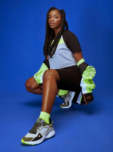 The identity comes together through a modular system inspired by the stripes and geometry typically found in running tracks and sports flags. The system is robust and flexible enough to adapt to all of the brand's touch points including retail, packaging, e-commerce, product and everything in between. The modules can rearrange in a myriad of formats to contain the different brand elements including imagery, video and illustration.