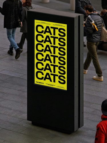 To support their many communication needs and ambition for mass appeal, we designed a custom display typeface, PAC Display, that references the form of the building with a distinctly New York vernacular referencing 19th Century Gothic street signage. A flexible approach to typesetting and layouts ensures PAC Display can become synonymous with the institution over time, while adapting to a wide range of interdisciplinary programming without feeling repetitive.