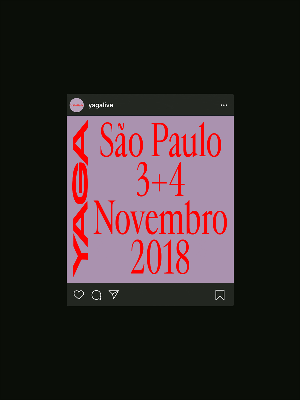 YAGA’s identity was designed to compliment the experimental aesthetics of the festival and its attendees, navigating a balance between fluid, organic gestures and bold, impactful moments. Red is central to the identity, not only evoking connotations of love, passion and blood but also as the color of resistance, regularly worn in protest against Bolsonaro’s government. By pairing the electric red with murky complementary colors that sit between purple and grey or green and brown, the combinations reflect an urban “ugly beauty” specific to São Paulo.