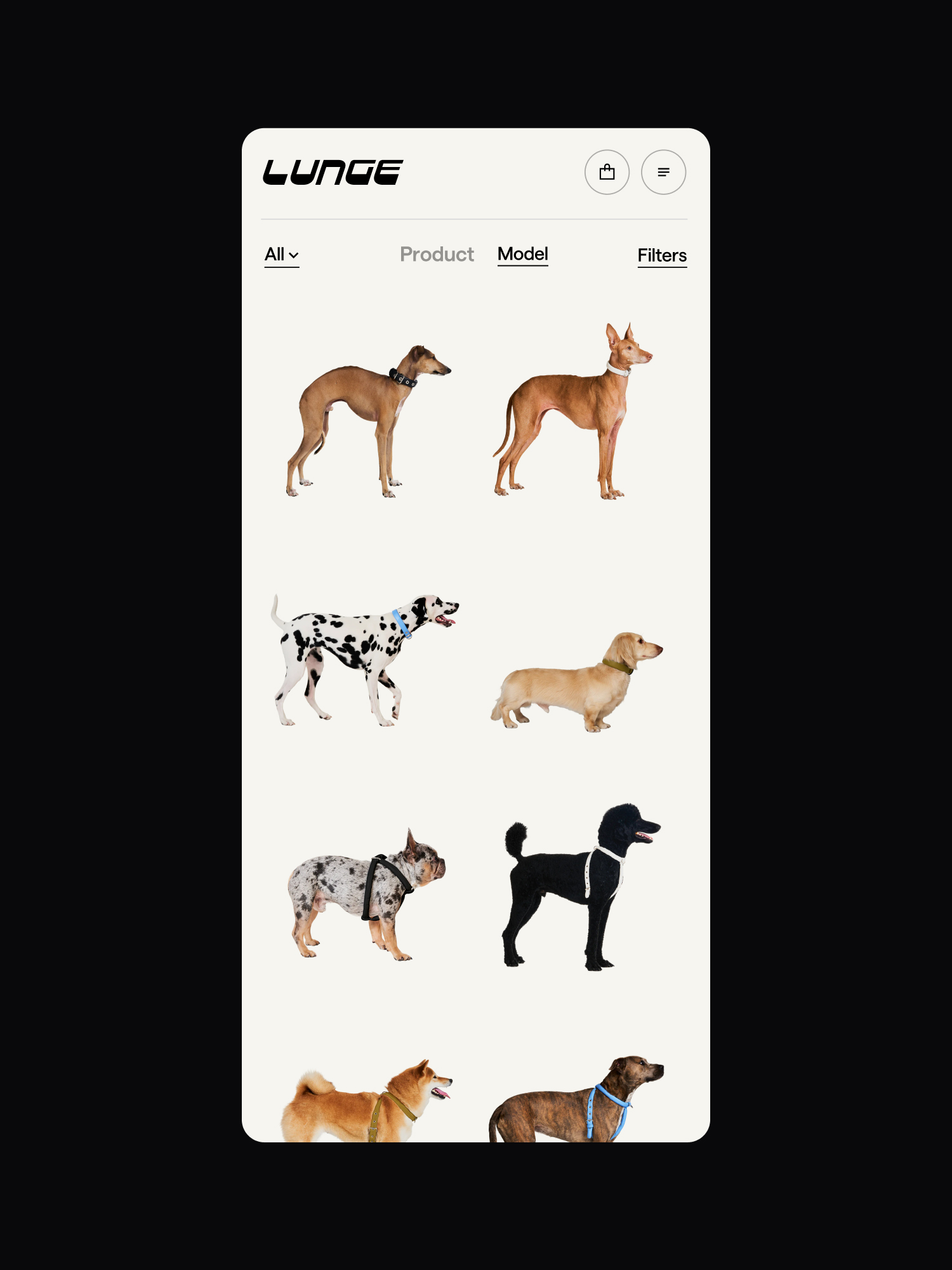 Breaking pet brand conventions with a design-forward approach, LUNGE makes contemporary dog accessories that merge premium materials with playful design. Prior to the launch of their first collection (featuring Napa leather collars, harnesses, and leashes) we worked closely with the brand’s founder on an identity that would influence everything from logo and packaging to photography and e-commerce experience.