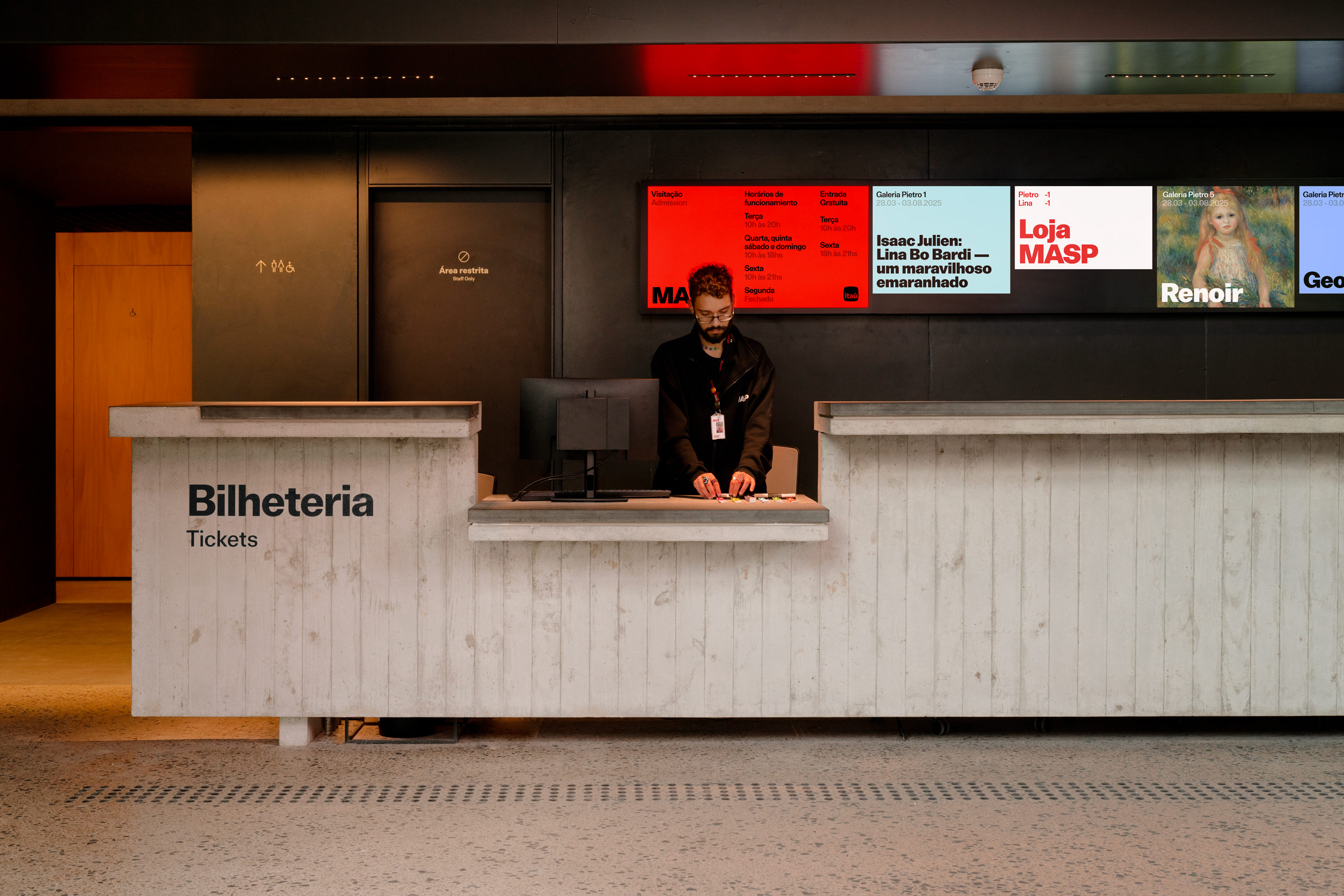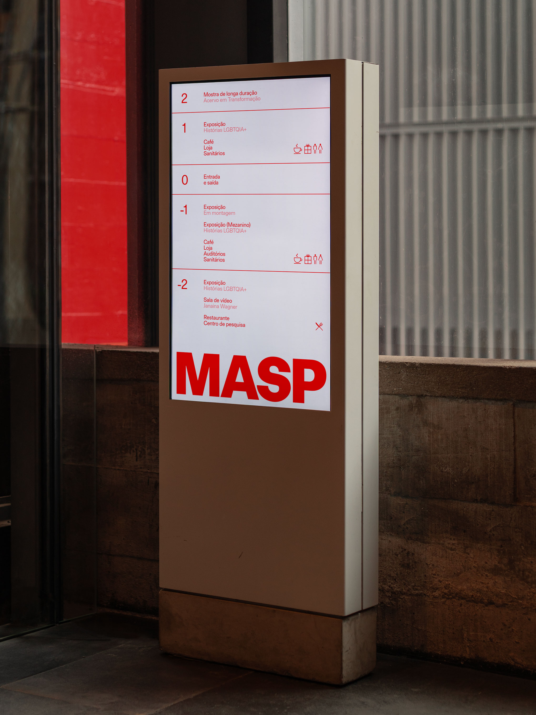 Launched in parallel with the new building, the rebrand became a city-wide event, sparking conversation and even hitting the front page of the two largest newspapers in Brazil. Inside the museum, bold signage, dynamic digital screens, and clear messaging brought the new identity to life. Outside, giant displays and banners announcing the new MASP were impossible to miss along Avenida Paulista.