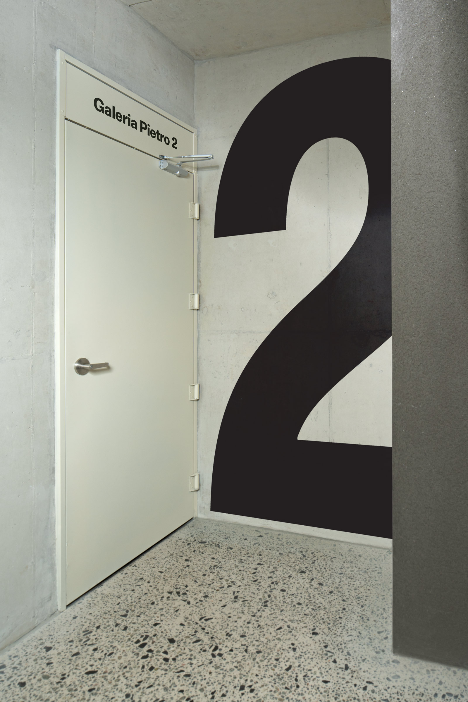 To further reinforce the connection between brand and architecture, we created a new iconic graphic element to illustrate the renovated museum complex in a telegraphic way. The abstract representation of the two buildings side by side (one red, one black) becomes a symbol for the new era of the institution.