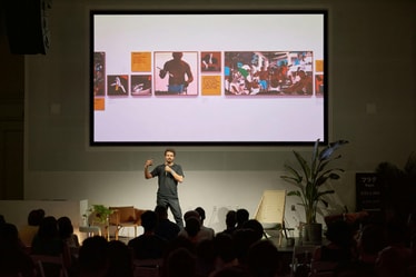 Through Bonde, we hope to draw attention to Brazil’s many contributions to design while opening up a broader perspective to explore what it could be. Given its numerous cultural influences, it is impossible to pinpoint one singular notion of Brazilian design. By inviting different speakers to share their unique perspectives, we were able to observe correlations and divergences between them, helping further expand that definition. Our final lineup of speakers included a wide range of design-practitioners, including names like Marina Willer, a partner at Pentagram; Jonathas de Andrade, a fine artist who uses graphic design as a medium to discuss contemporary Brazilian subjects; Barbara Soalheiro, a writer who is challenging the design process through her new method of working; and Zéh Palito & Rimon Guimarães, a duo that has traveled the world painting murals including their most recent project at refugee camps in Syria.