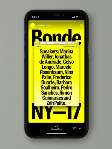 The name Bonde was taken from the Portuguese word which translates as “tram”, alluding to the connections between different places. Today, “bonde” is more frequently used as a colloquial term that refers to a “crew” or a collective. With that in mind, our goal with the design of Bonde was to create an identity that conjured an instinctive sense of Brazilianness without reverting to the usual cliches that tend to be super colorful, tropical or ornate. Since Bonde’s primary objective is to showcase design first and foremost, the identity was constructed not to overshadow the featured work. Instead, it evokes a complementary playfulness with the now iconic Bonde yellow (drawn from the classic color of the trams) pervading all stretches of the identity, making it immediately recognizable.