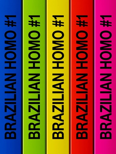 Our design for Brazilian Homo reinforces the publication’s unfiltered tone and collaborative spirit. We created five distinct covers, each with its own star and hero color; when stacked, the five spines form a vibrant rainbow. Consistent in their typographic layout, all covers prominently feature the names of contributors, including photographer Maria Maltoni and stylist Leandro Porto.