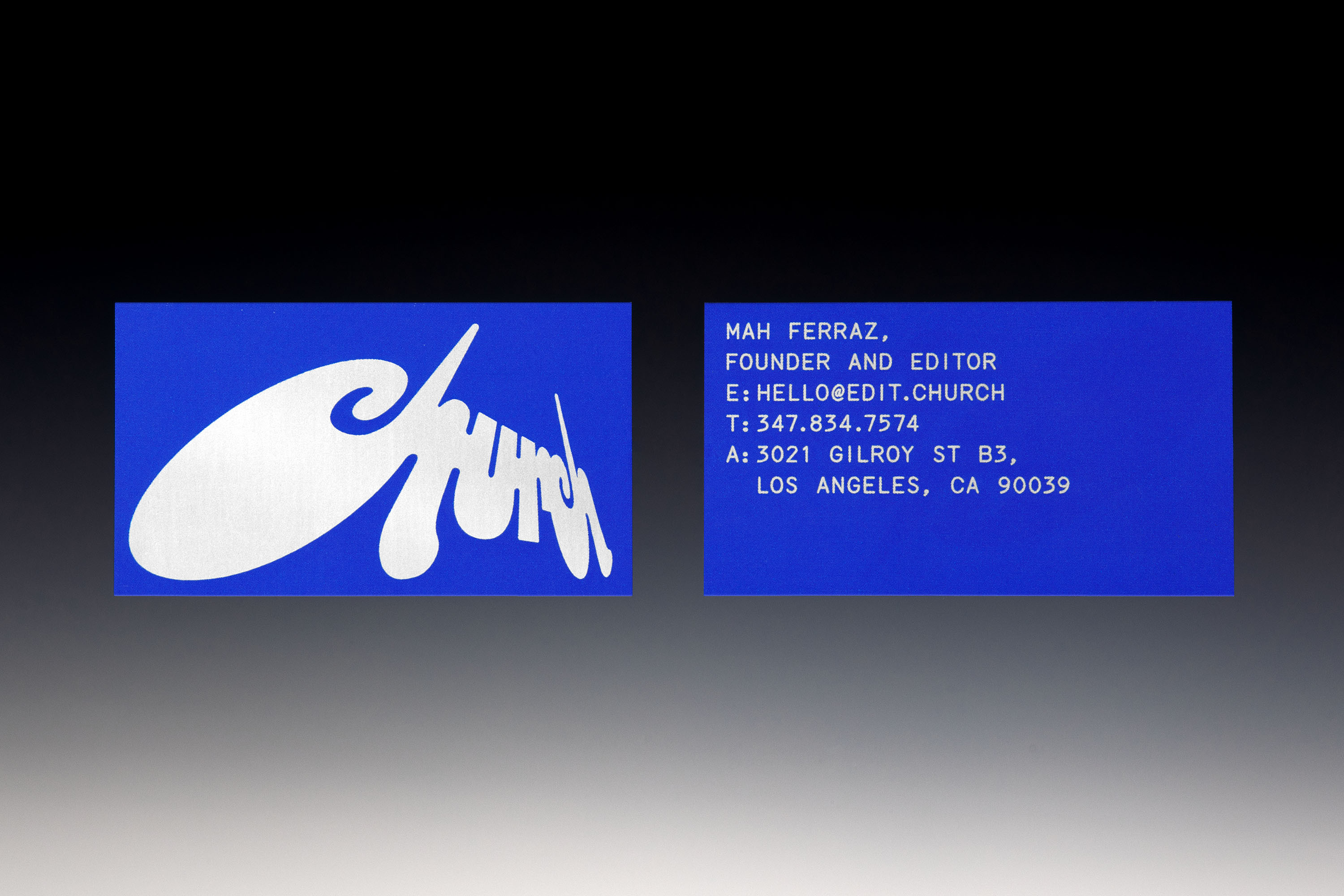 Their unconventional logo takes inspiration from the view of cathedrals from the ground below. We refined the wordmark—concepted and developed by artist Chloe Corriveau—into a scalable logo that felt both confident and organic. We also introduced new versions of the mark from different angles: a visual reflection of Church’s belief in the power of championing diverse points of view.