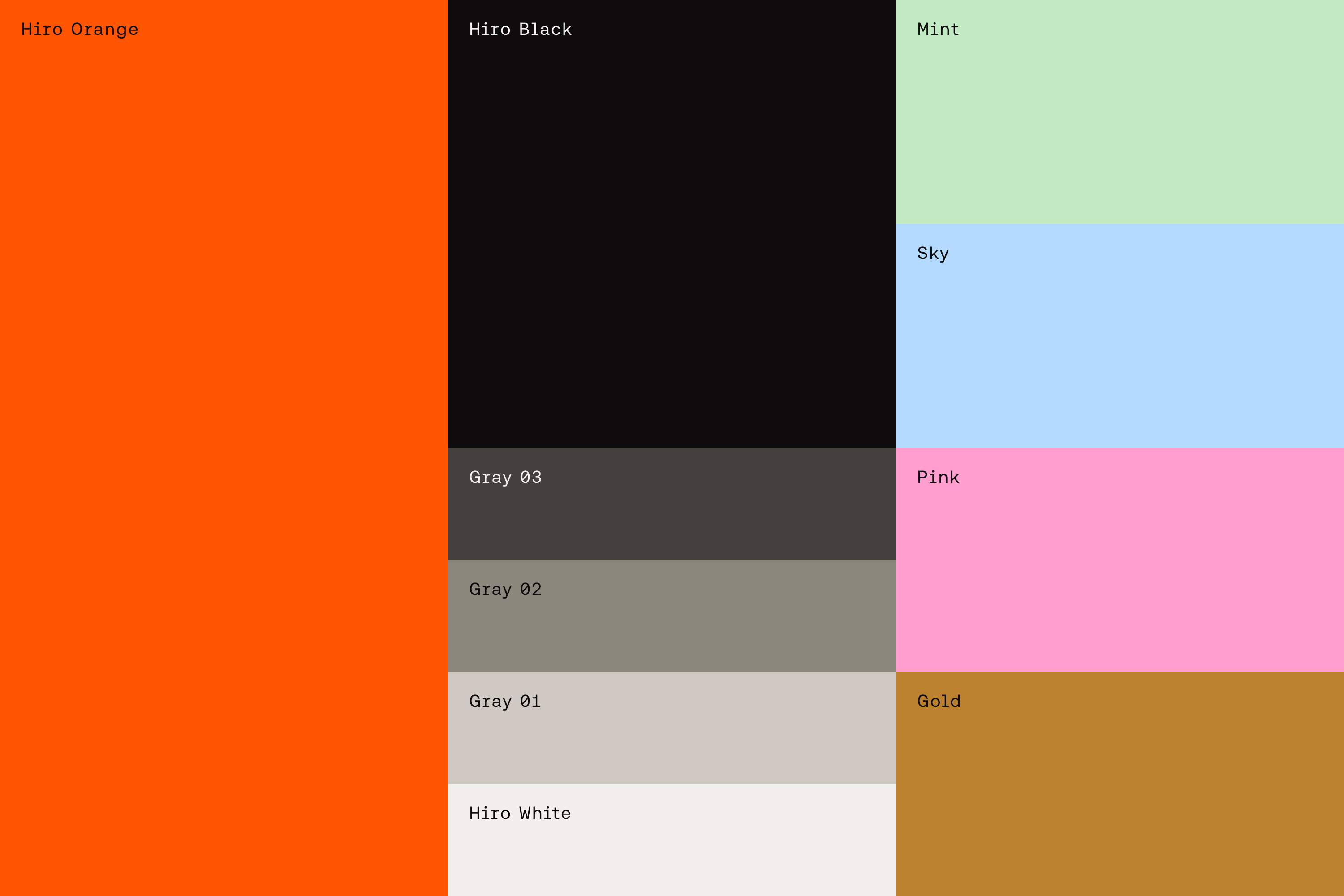 As a gesture to Bitcoin, vibrant orange is at the center of the color strategy, complemented by a secondary palette that references the analog pastels of early computing punched cards. In the crowded space of Web3 startups, the identity establishes Hiro as a new kind of protagonist: sharp, courageous, and a bit unexpected.