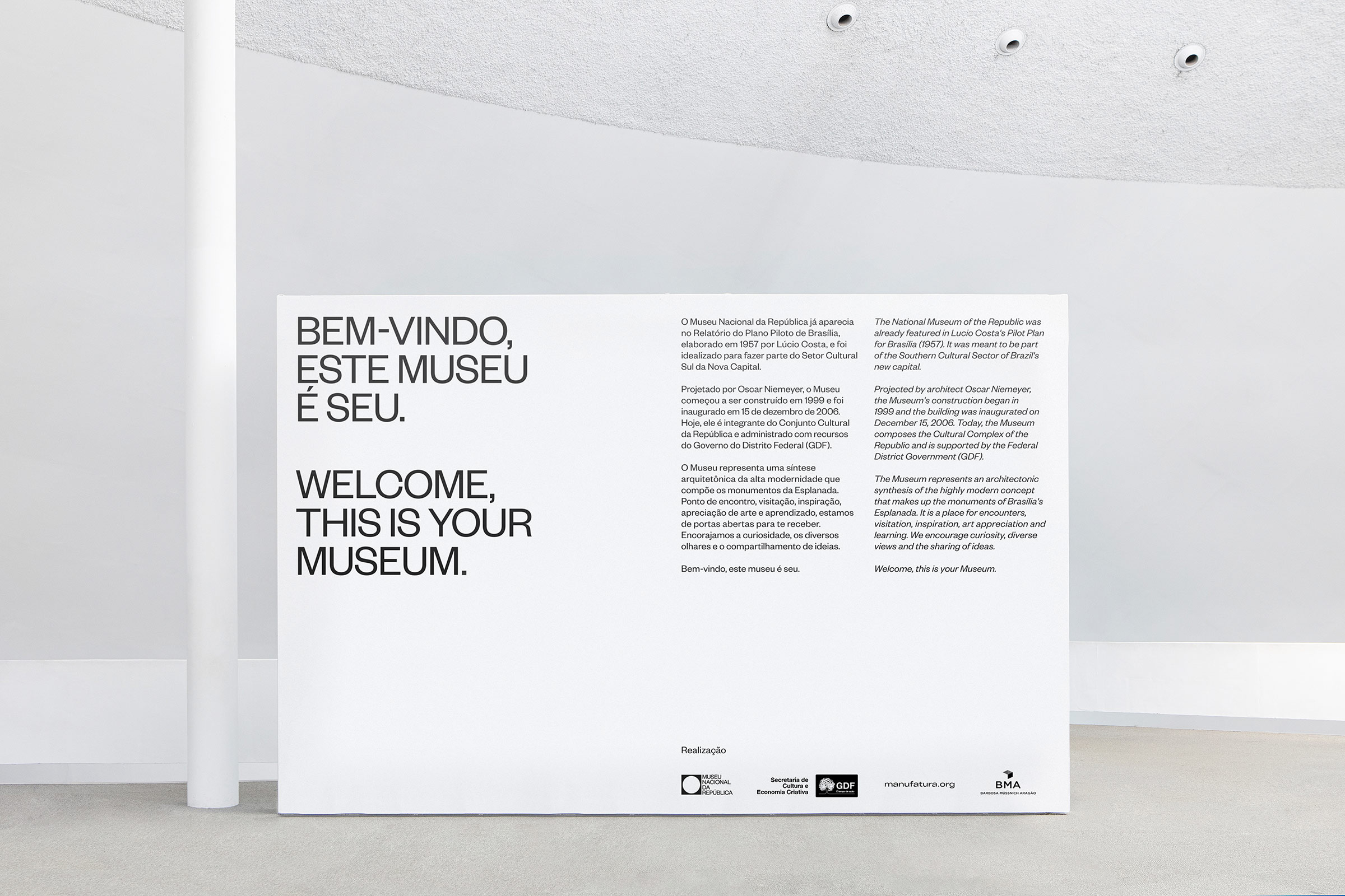 Though the museum operates upon inclusive values that seek to provide free access to contemporary art and culture, the museum (and fine art itself) can feel intimidating and elitist. With this in mind, our utilitarian visual language paired with a warm tone of voice work together to strengthen the relationship between the museum and the people. This sentiment is reinforced through the wordplay of “SEU MUSEU”, an anagram created by Manufatura meaning “YOUR MUSEUM”, which highlights each individual’s role within Museu Nacional’s dynamic ecosystem, fostered by its contributors, crew and visitors.