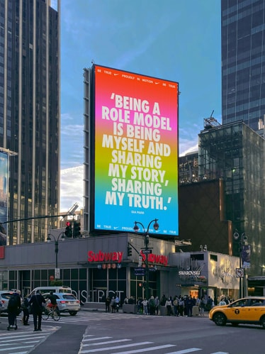 By centering queer, global talent in all dimensions of the initiative, the new Be True creates a powerful platform for self-representation that can evolve with the community. The works of these artists have since been displayed across the globe through hundreds of high-impact touchpoints including retail takeovers, installations, film, billboards and experiential activations.