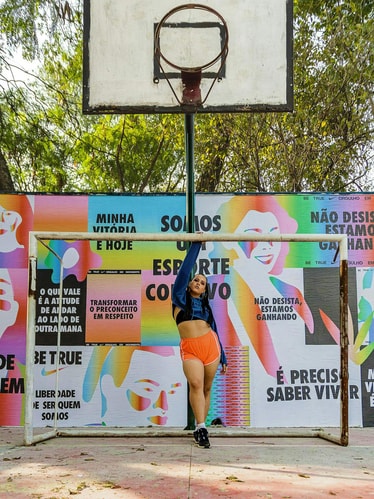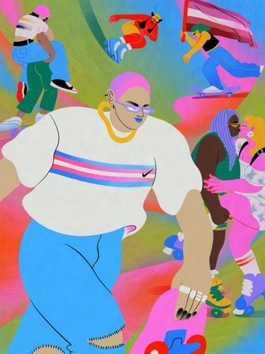 Similarly, the identity system serves as an ever-evolving platform that supports more localized collaborations and partnerships with LGBTQIA+ artists and athletes around the world. The imagery produced for Be True’s relaunch is a culmination of just that: it features commissioned photographers, writers, stylists, designers, illustrators, and other creators. Names like Luke Gilford, Ohni Lisle and Leandro Assis came together along with some of the global figures redefining sports culture today, including Bretman Rock, Shiho Shimoyamada, and Gia Parr, to name a few.
