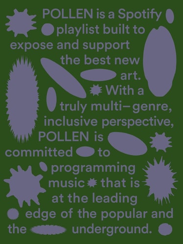 Pollen is a fluid and inclusive Spotify playlist that champions and propels the best new music and art. With a truly multi-genre, inclusive perspective, Pollen is committed to programming music that is at the leading edge of both the popular and the underground. Moving away from traditional playlists that target one specific genre or mood, Pollen instead assembles an overall “vibe” more akin to a lifestyle; a collection of moments rather than a singular category.