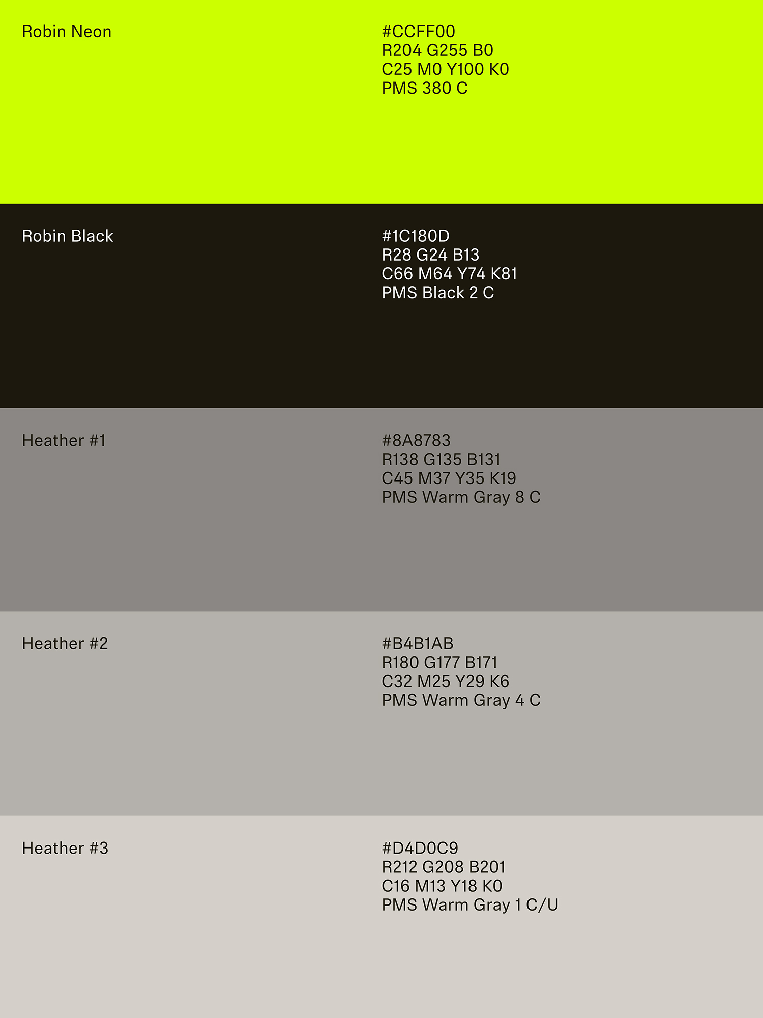We began by streamlining their iconic feather symbol to draw attention to the upward arrow within it, then polished the letterforms of the wordmark — resulting in a more intentional brand signature. The typographic system features a new sans serif, Robinhood Phonic. Where their previous sans lacked character, Phonic’s delicate ink-traps bring personality without sacrificing precision. This is balanced by headlines set in a warm yet intelligent serif, Martina Plantijn. Our color strategy departs from competitors’ rainbow approach, opting instead for a focused palette of black, white and mature neutrals that make room for pops of Robin Neon: a new electric yellow green unique to Robinhood.