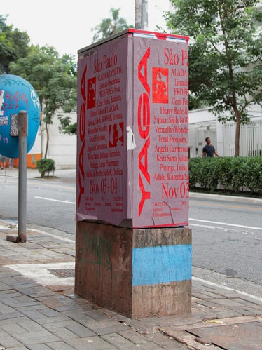 YAGA’s identity was designed to compliment the experimental aesthetics of the festival and its attendees, navigating a balance between fluid, organic gestures and bold, impactful moments. Red is central to the identity, not only evoking connotations of love, passion and blood but also as the color of resistance, regularly worn in protest against Bolsonaro’s government. By pairing the electric red with murky complementary colors that sit between purple and grey or green and brown, the combinations reflect an urban “ugly beauty” specific to São Paulo.